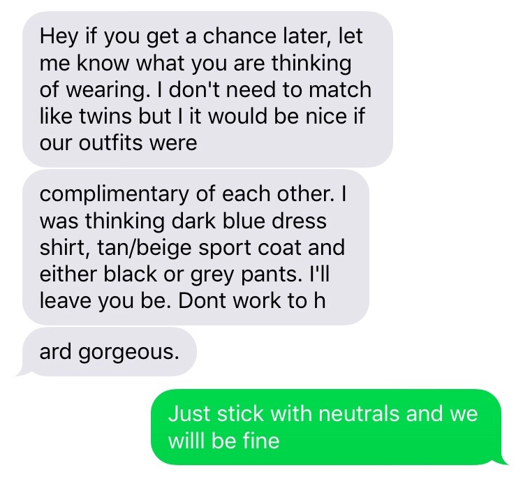 Monday comes and I texted him in the morning to confirm plans. No response.